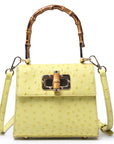 Elevate your accessory game with the Ostrich Print Bamboo Handbag today!